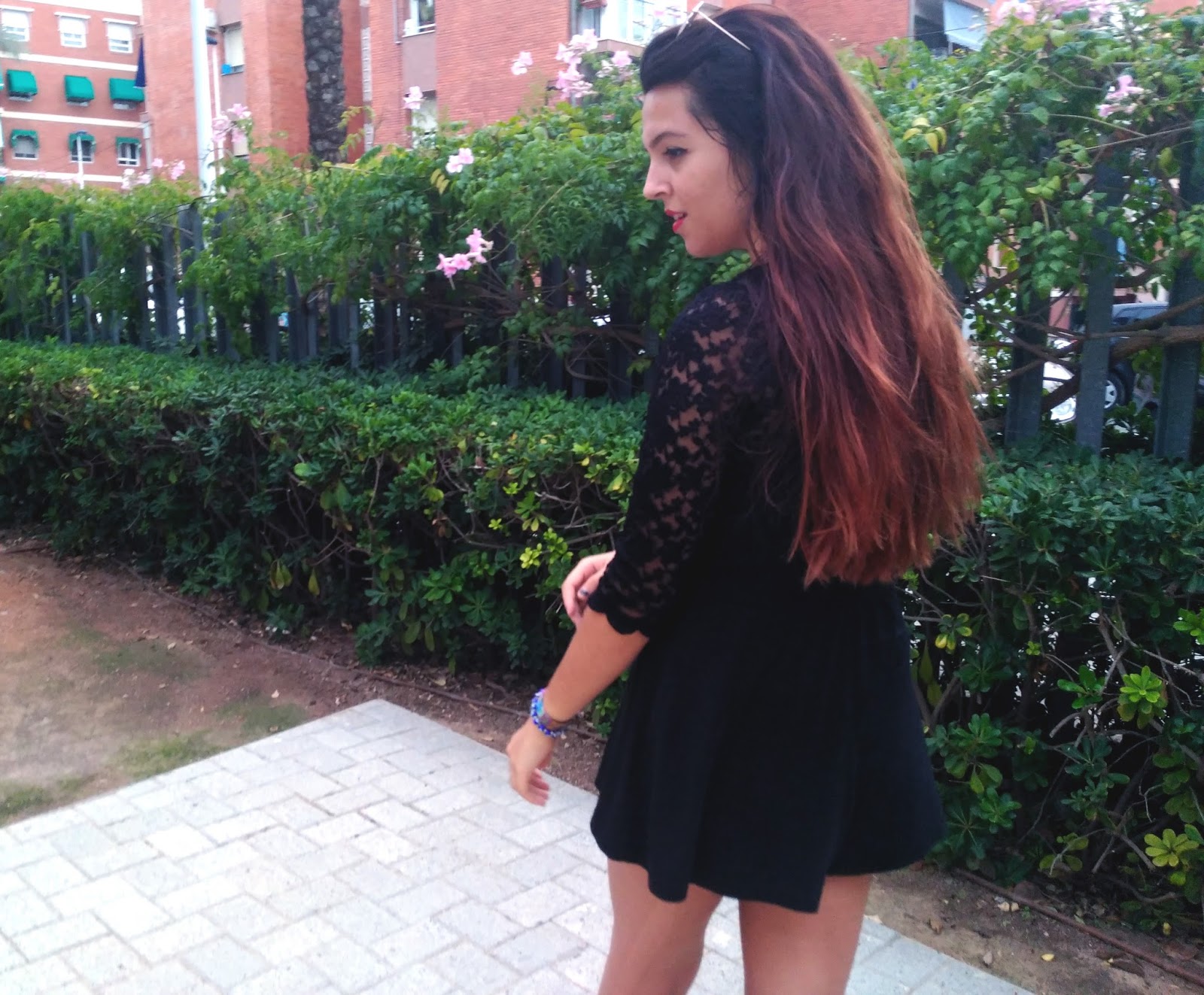 me encanta el look combinando las tendencias de esta temporada: encaje + negro